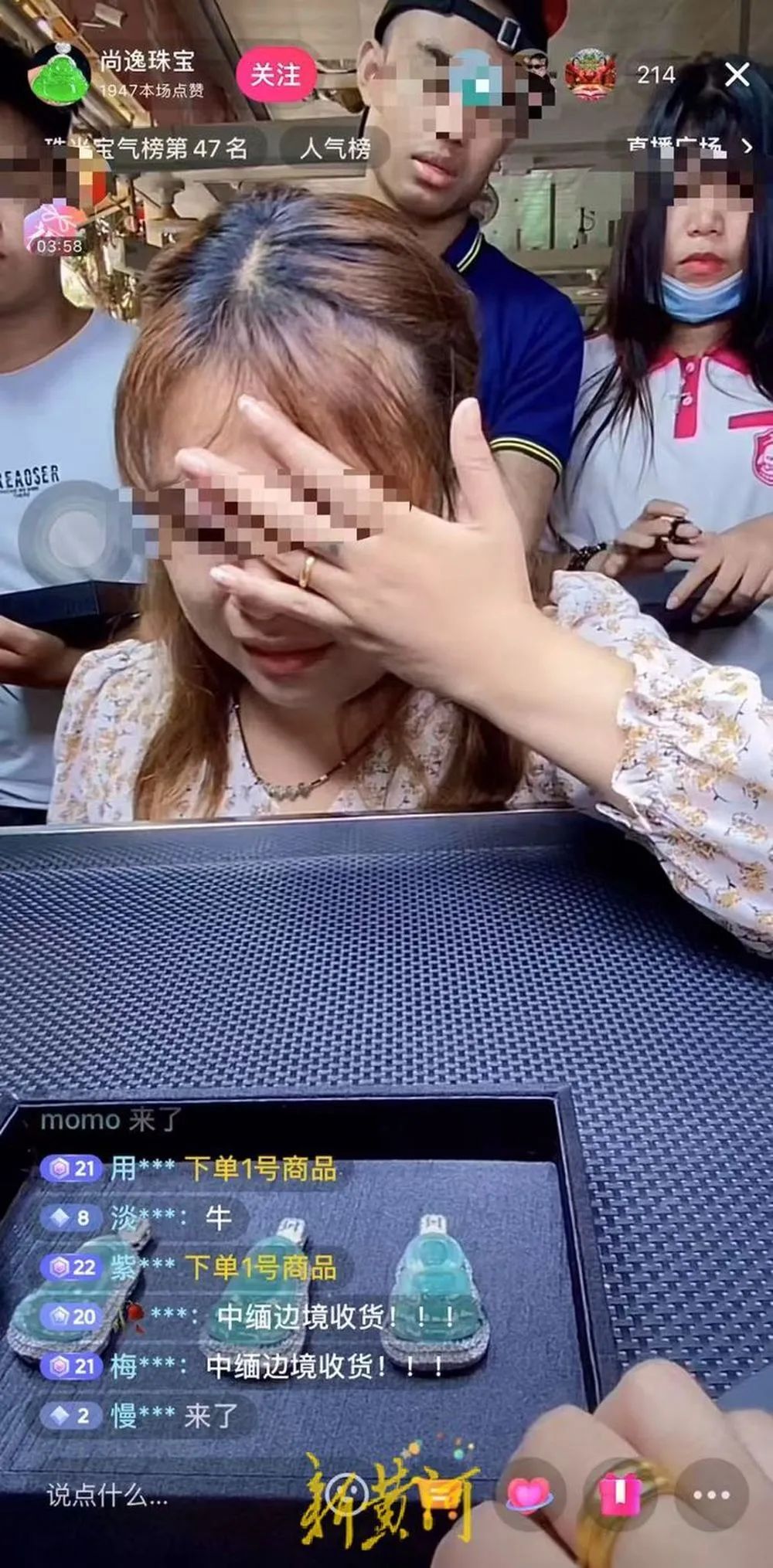 直播间内,有的以“中缅边境收货”为噱头售卖;有的声称对标某购物平台1888888元的佛公吊坠只需90元就能下单;有的通过悲惨、夸张的故事演绎与网友打感情牌,打着“捡漏”“义卖”的旗号销售珠宝……