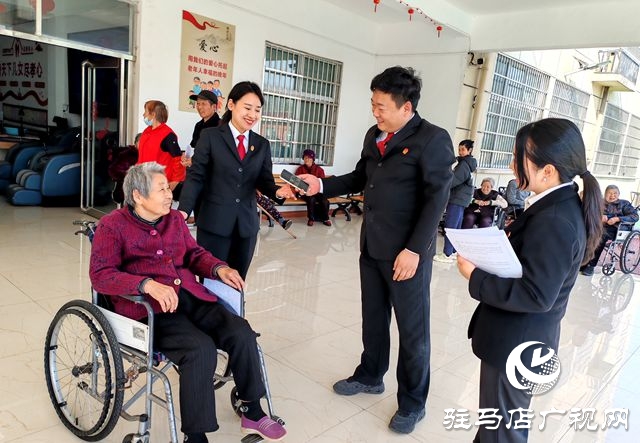 为宣传《中华人民共和国老年人权益保障法》,弘扬敬老、养老、助老传统美德,连日来,正阳县人民法院真阳法庭组织人员深入养老机构,向老年人讲解赡养责任落实、财产继承、社会保障、社会服务等老年人关心的法律知识,并现场解答他们提出的问题,为老人们送去香蕉、苹果、梨等水果。