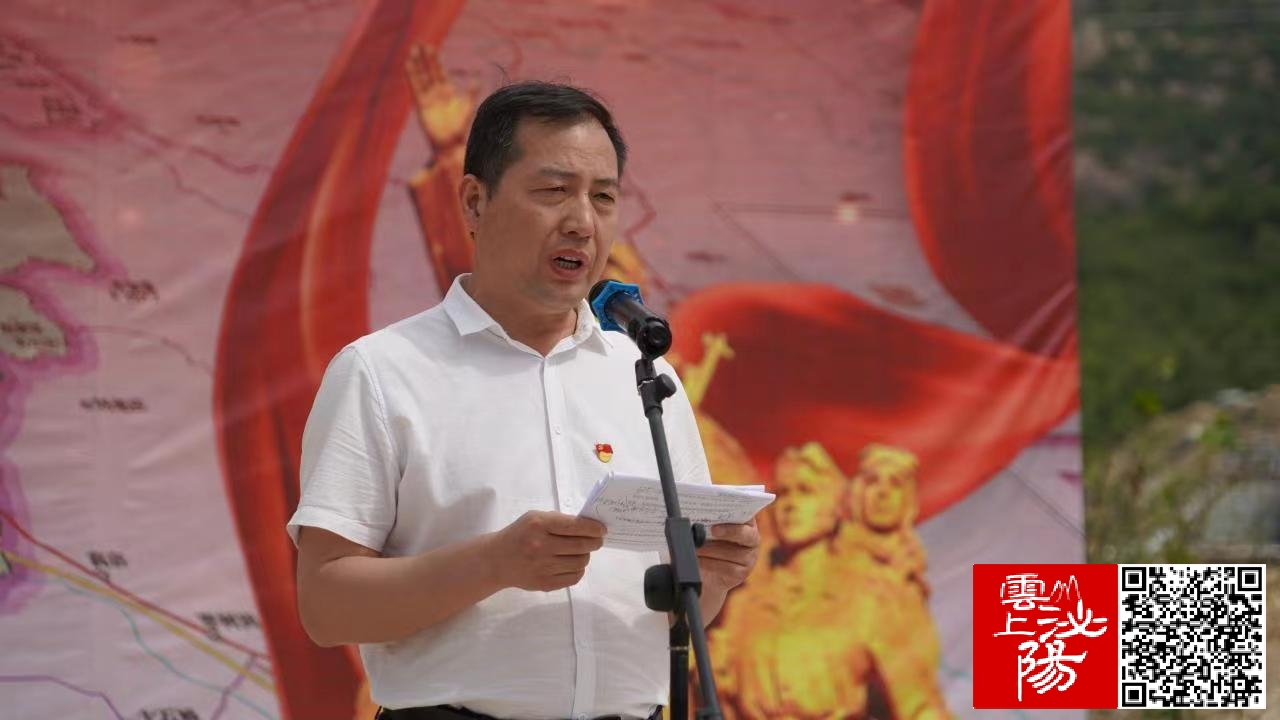 县委宣传部常务副部长孙德兵宣布红色题材纪录片《红军来过俺家乡》正式开机,并和纪录片导演、中国电视艺术家协会会员、高级编辑王新国老师一起为纪录片正式开机揭幕。