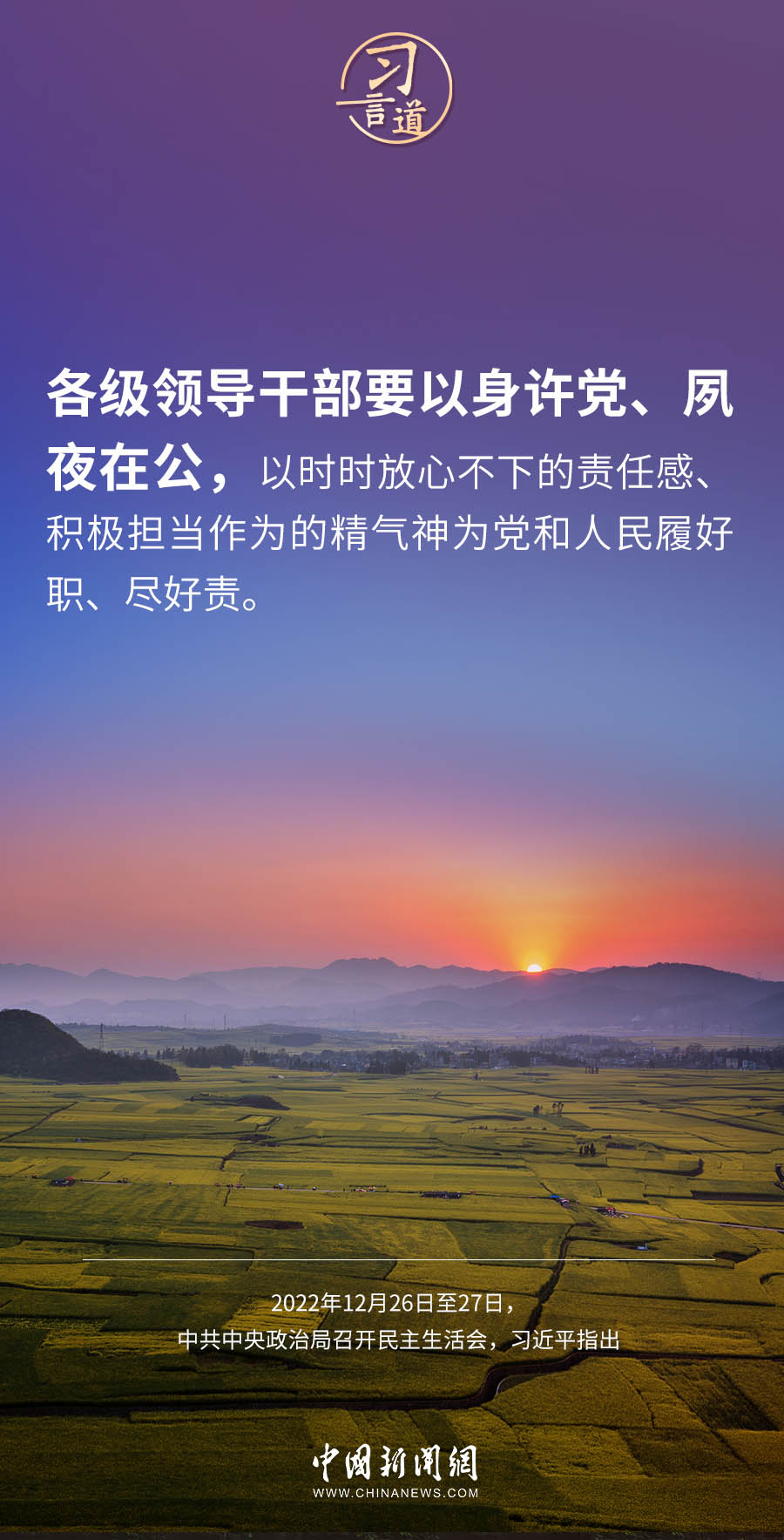 中共中央政治局于12月26日至27日召开民主生活会,中共中央总书记习近平主持会议并发表重要讲话,他指出——