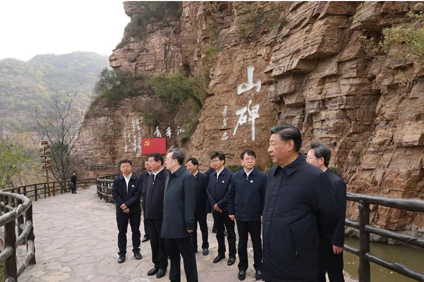 2022年10月26日至28日,习近平在陕西省延安市、河南省安阳市考察。这是28日上午,习近平在安阳林州市红旗渠青年洞考察。