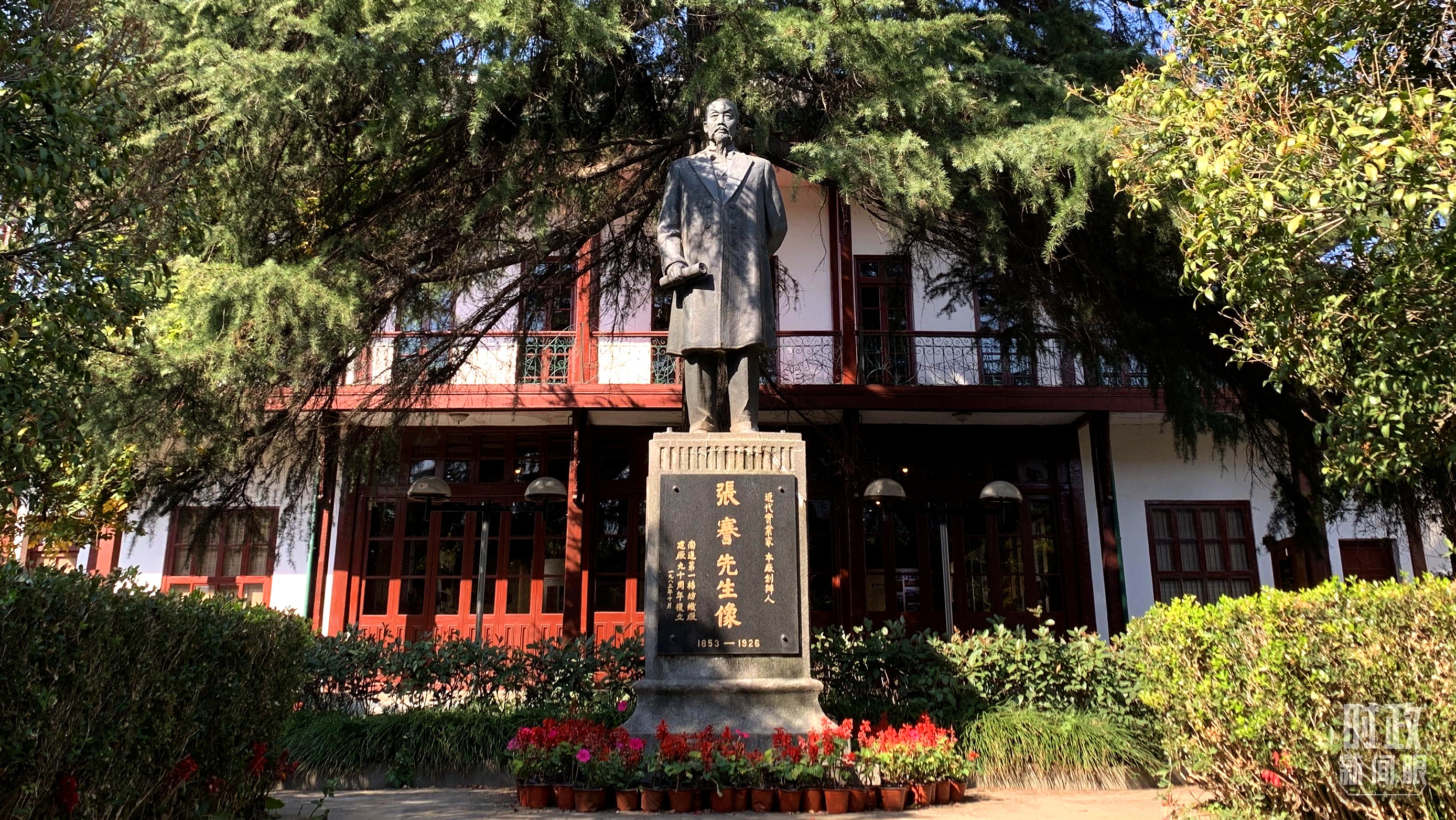 △江苏南通,张謇雕像。2020年,习近平考察张謇创办的南通博物苑,称赞张謇是“中国民营企业家的先贤和楷模”。(总台央视记者杨新禹拍摄)