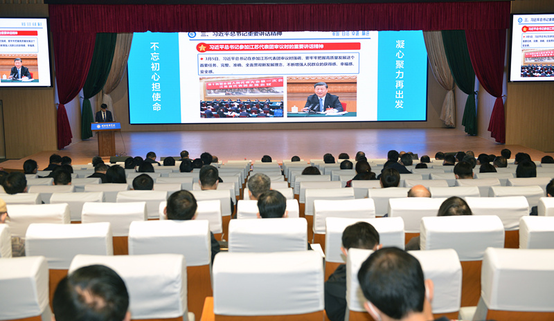 宋克兴从八个方面回顾了两会盛况和取得的重要成果,重点传达了习近平总书记在两会上的重要讲话精神,详细解读了政府工作报告,全面介绍了河南代表团代表履职和议案建议情况。