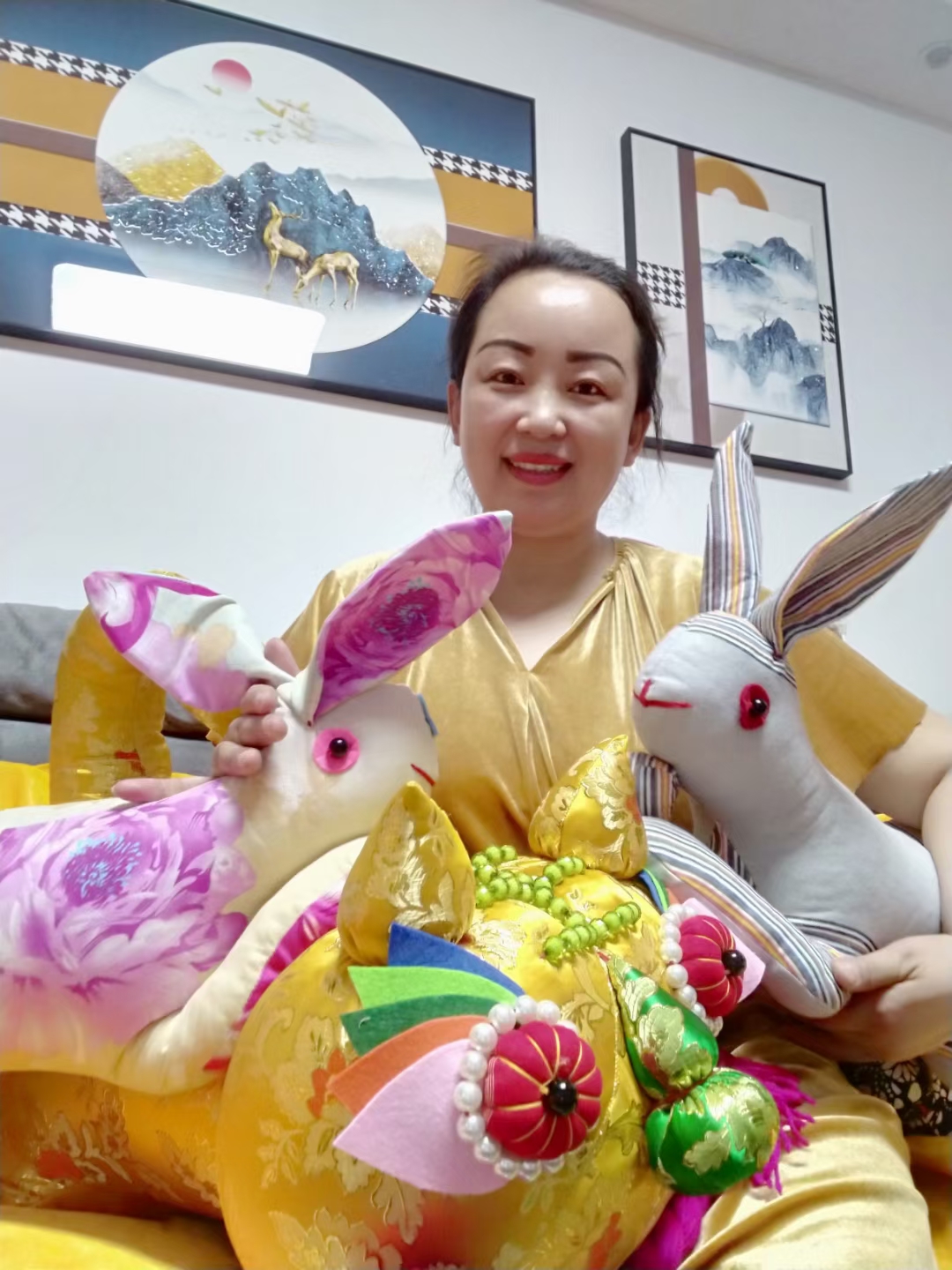 大河网讯 农历兔年,兔子当仁不让地成为非遗传承人的创作主角。带福字的兔、带牡丹花的兔、印染花布的兔……省级非物质文化遗产香包制作技艺传承人王彩红将非遗手工与时代审美相融合,设计出一款款既传统又富有时代气息的香包、挂件等,让兔年春节显得别致且新潮。