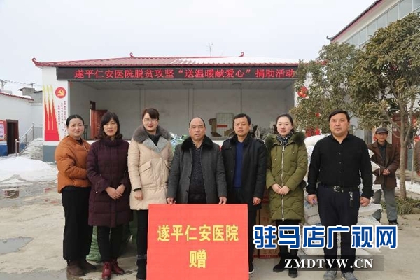 【驻马店广视融媒讯】(记者 朱剑锋 通讯员 冯颖颖) 2月1日上午,遂平仁安医院党支部书记崔彦如、副院长董新贺携工作人员驱车来到褚堂乡于楼村,开展“脱贫攻坚送温暖、献爱心”捐助活动。在于楼村驻村第一书记冯颖颖、苏秋唯,褚堂乡副书记张琦的陪同下,先后为26户结对帮扶贫困户送去了慰问金、米面油以及过冬棉被,共计2万多元的慰问物资。为于楼村的贫困户带来了仁安医院的真切问候,切实帮助贫困群众解决冬季和节前的生活难题。