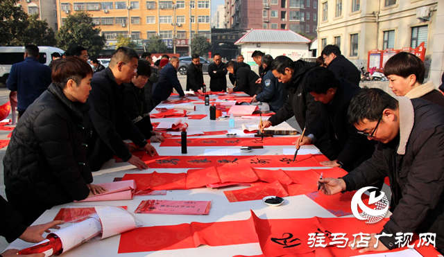 1月20日,黄淮学院党委宣传部组织学校教工书协的书法家们与西平县文明办、海棠书画院、诗词协会联合开展以“新春送福·文化惠民”为主题的“社会主义核心价值观移风易俗春联进万家”活动。