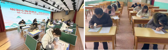 比赛按学科分时段有序进行,南北校区全体教师积极参与。钢笔字环节中,教师们笔触沉稳、结构工整,展现出扎实的硬笔书写功底;粉笔字环节则运笔流畅、布局合理,体现了课堂板书的示范性与实用性。