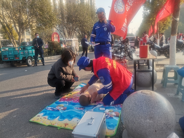活动现场,志愿者们分工有序,服务内容贴近民生需求。在消防宣传区,队员详细讲解灭火器的正确使用方法,通过实物演示让市民掌握初期火灾扑救技能;应急救护展示区吸引了众多市民驻足,救援队员利用模拟人现场演示心肺复苏操作流程,讲解急救黄金时间的重要性。