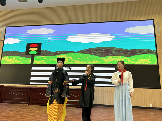 班会活动上,学生们自编自演了朗诵、趣味辩论赛、舞蹈、情景剧、大合唱等多个节目,用同学们喜闻乐见的形式宣传了知法守法、预防校园欺凌、网络安全、道路交通安全等多个热点话题。同学们的演绎生动精彩,观众们也在潜移默化中明白了“法律就在身边”的道理,懂得了要尊重他人的合法权益,也学会了用法律保护自己。“法治教育让我明白规则的重要性。我会从自身做起,遵守校规校纪,用实际行动维护良好的秩序。”学生何思雨说。