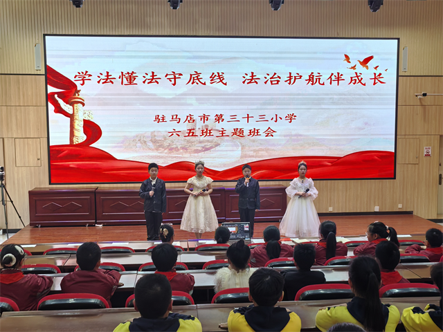 为深入学习贯彻法治精神,提升学生的法治素养和自我保护意识,营造良好校园法治氛围, 12月16日,驻马店市第三十三小学六年级学子举办了法治教育主题班会活动。让法治精神浸润童心,为学生健康成长保驾护航。