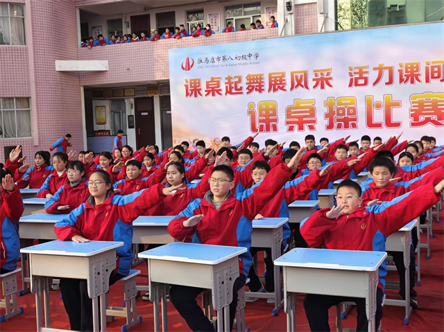为丰富校园文化生活,增强学生身体素质,展现青春昂扬风貌,12月16日下午,驻马店市第八初级中学课桌操比赛顺利举行并圆满落幕。学生以班级为单位参赛,用整齐划一的动作、朝气蓬勃的姿态,为全体师生呈现了一场活力四射的视觉盛宴。