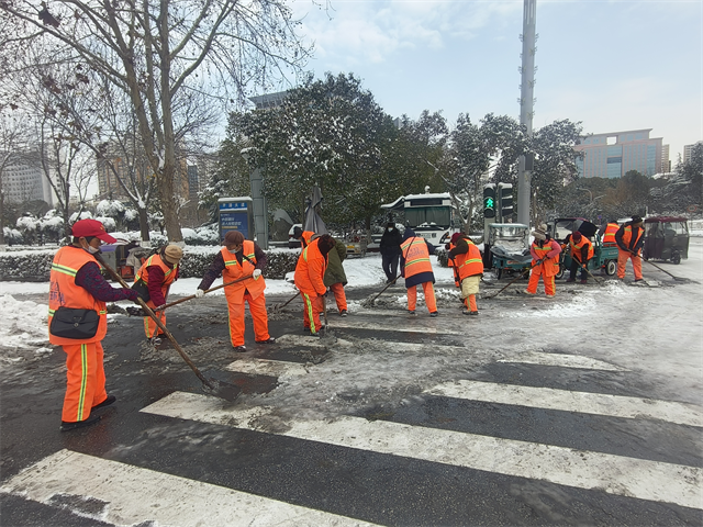 1月19日,驻马店市普降大雪,积雪深度普遍超过10厘米,20日起最低气温骤降至-11℃,低温雨雪冰冻天气给辖区交通出行和群众生产生活带来严峻挑战。面对极端天气考验,驻马店经济开发区迅速启动应急响应,遵循“政府主导、属地负责、全民参与”原则,打响了一场全方位、立体化的清雪除冰攻坚战。