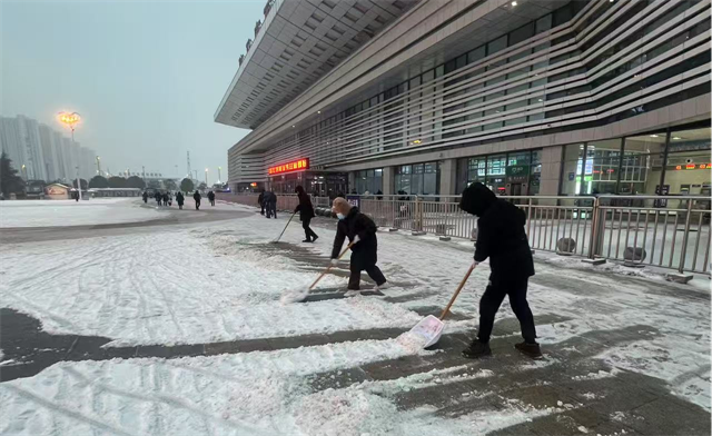 截至20日下午,除雪作业已基本结束,广场地面积雪全部清除干净,有效保障了旅客出行畅通。