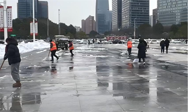 20日清晨,降雪渐止。根据示范区统一部署,区综合执法大队及时到岗、快速组织,全面展开积雪清理工作,并协调调动推雪车2辆、大型清扫车1辆,对广场进行彻底清扫。此次行动得到了豫南监狱、示范区城管局等单位的支援配合。
