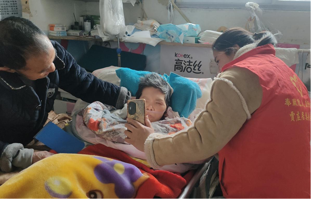 在行动不便的老人家中,志愿者们耐心地协助完成身份核验,仔细为老人进行人脸识别。对于卧床不起的残疾老人,志愿者们更是全程细致周到,确保认证流程顺利完成。同时,志愿者们还与老人亲切交谈,关心他们的日常生活和身体状况,认真倾听诉求,并为老人讲解养老政策,叮嘱他们注意冬季保暖和用火用电安全。