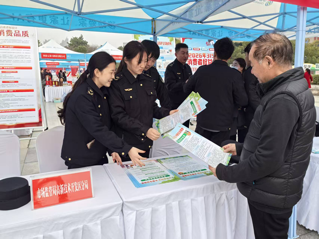 工作人员通过悬挂横幅、设置展板、发放宣传资料等形式,用接地气的语言结合日常消费纠纷案例,向群众细致讲解消费维权重要性,引导树立科学理性消费观念。